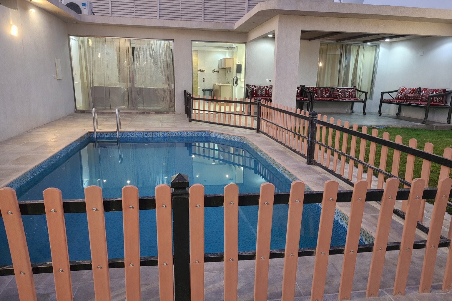 يحتوي على مسبح خاص، جلسات خارجية أنيقة، مجلس، ومرافق متكاملة تضمن تجربة مريحة وممتعة.